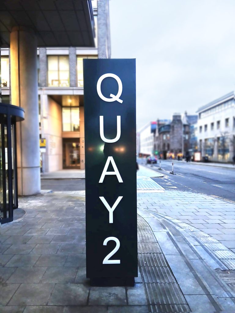 Bespoke illuminated signage installed at Quay Two in Edinburgh, We think you’ll agree it looks amazing!